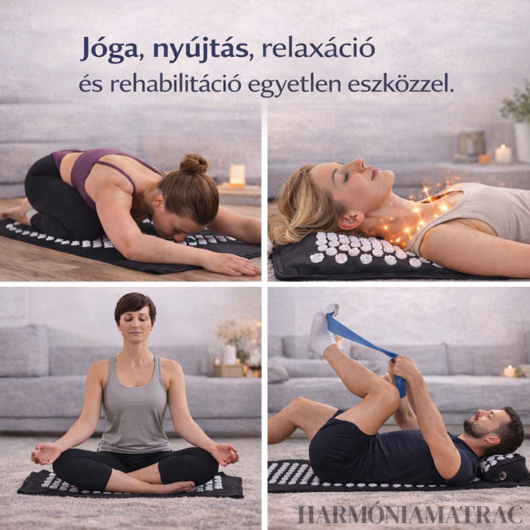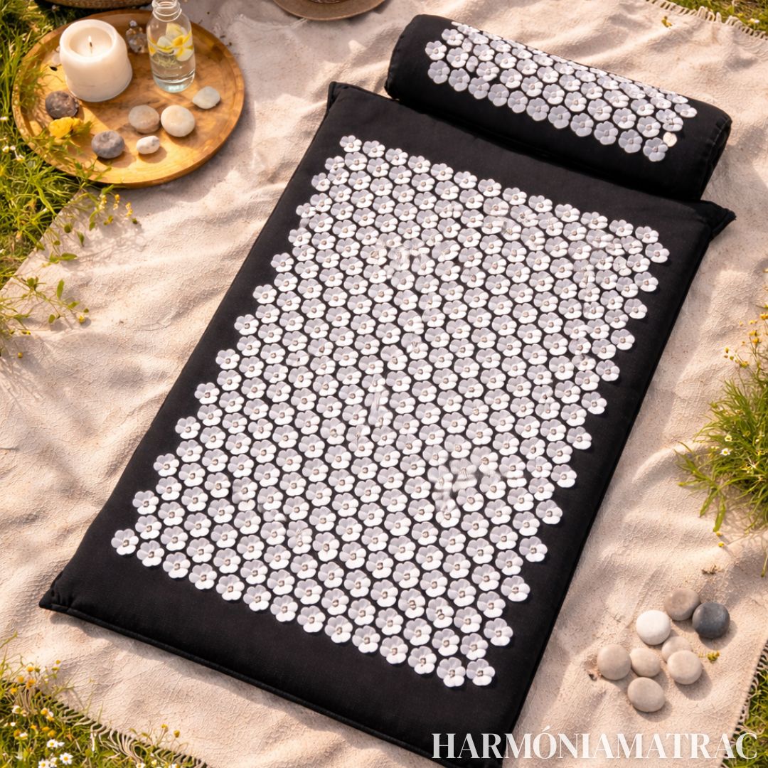 Ez egy akupresszúrás matrac és párna szett, amely pontszerű stimulációval segítheti az izmok ellazítását, a vérkeringés serkentését és a stressz csökkentését. Otthon is biztonságosan használható, jóga, relaxáció, nyújtás és regeneráció kiegészítésére.
